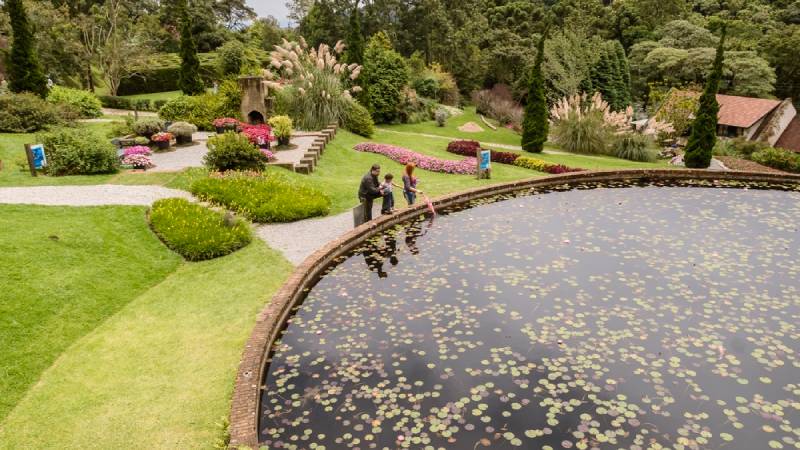 Jardins Temáticos: Áreas inspiradas no Japão, China (com portal e dragão), Inglaterra, França e outros.